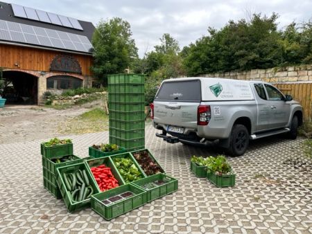 Unsere Lieferung von heute morgen, 30 kg Tomaten, 40 kg Gurken, 6 kg Mangold, 72 Schalen Mircogreens, 200 Radischen, 20 Salate und natürlich ein paar Abokisten, mehr passt dann ins Auto auch nicht rein.