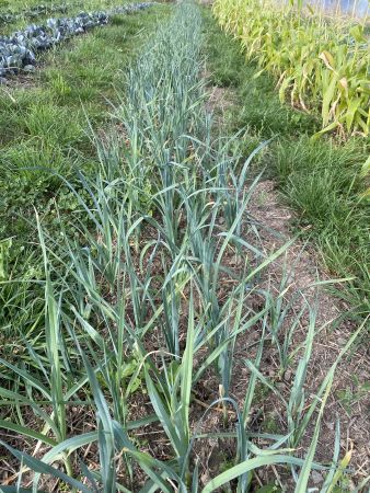 In der kälteren Jahreszeit kaum wegzudenken, Porree. Der erste Satz, wie bei allen Gemüsen dieses Jahr, stark in Mitleidenschaft gezogen, Satz 2 und 3 kommen aber recht ordentlich.
