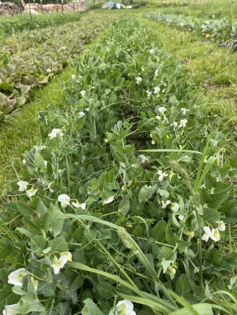 Wie im vergangenem Jahr ist auch die Zuckerschote oder Zuckererbse ein fester Bestandteil unseres Anbauplanes. Mit den neuen Sorten Norli und Sugar Lace haben wir zwei Sorten die ab Mitte März bis April ins Freiland gehen und ab Juni geerntet werden können und unsere altbewährte Sorte Ambrosia die bis Juni in Freiland geht und so eine Ernte bis September ermöglicht. Wir haben 3,4 kg Saatgut was ungefähr 12.800 Erbsenpflanzen entsprechen würde. Bei einer Keimrate von 85 % sind das rund 10.800 Pflanzen. Ein Satz mit 20 Metern Beetlänge zweireihig kann ca. 1.400 Pflanzen aufnehmen.